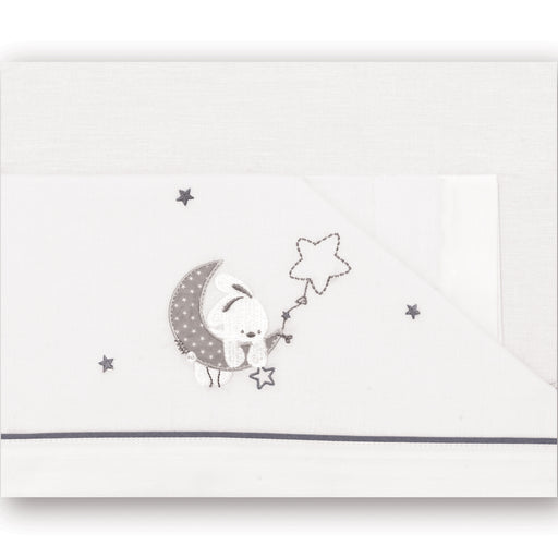 Set Lenzuolino Culla Bimbi Dreams composto da: lenzuolino sopra ricamato, lenzuolino sotto con angoli, federa per cuscino. Il tutto in cotone 100%....