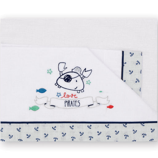Set Lenzuolino Culla Pirulos composto da: lenzuolino sopra ricamato, lenzuolino sotto con angoli, federa per cuscino. Il tutto in cotone 100%. D...