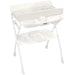 Eta' di utilizzo: 0-15 kg Descrizione: Morbido fasciatoio con sistema di anti-ribaltamento, vaschetta con 2 sedute anatomiche (una inclinata per bimbi da 0 a 6 mesi e una seduta per bimbi da 6 a 12 mesi), vani porta sapone e porta spugnetta, tappo e tubo per scarico dell'acqua, cassetto portaoggetti con porta flaconi. Ideale per i bagni piu' piccoli, puo' essere posizionato sui sanitari (altezza cassetto 40,5 cm). Chiusura compatta. DIMENSIONI E PESI: Aperto: L 77,5 - P 69 - H 101 cm Chiuso: L 72,5 - P 22 - H 108 cm Kg 8,2