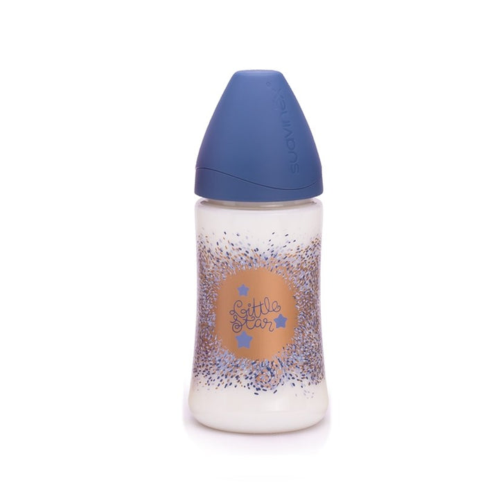 Biberon Suavinex 270ml Con Tettarella In Silicone Flusso Variabile 3p +0m Haute Couture Azzurro Stella Blu