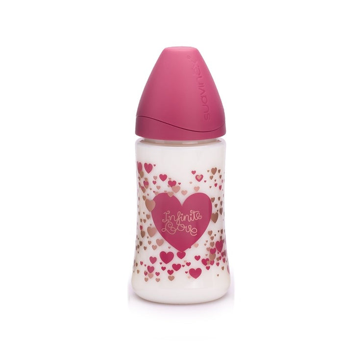 Biberon Suavinex 270ml Con Tettarella In Silicone Flusso Variabile 3p +0m Haute Couture Rosa Scuro