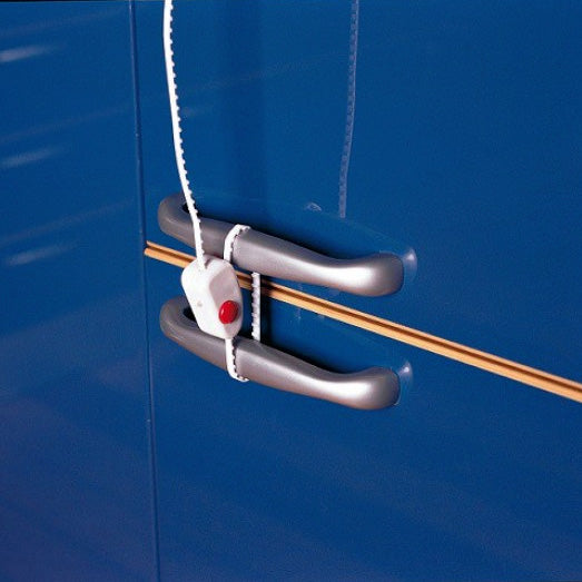 Il Blocco Armadi Brevi a Laccio impedisce di aprire le ante dell'armadietto e in generale l'accesso agli armadietti che contengono oggetti fragili o prodotti pericolosi per il bambino. Facile aggancio regolabile. Nella confezione si trova 1 pezzo.