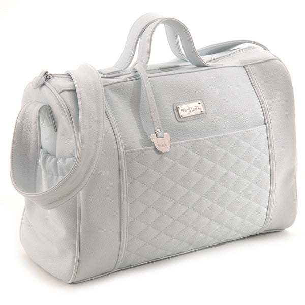 Borsa Mamma Nanan Azzurra Ecopelle Trapuntata La borsa mamma trapuntata bianca della nuova collezione in ecopelle Nanàn è un eco-chic per eccellenza. E' impreziosita da dettagli come la trama trapuntata, il manico e la tracolla per una mamma alla moda che non rinuncia alla comodità. E' inoltre dotata di una pratica cerniera che permette il facile inserimento degli oggetti necessari al tuo bebè. Una linea completa, per la mamma e il suo bambino, per poter portare sempre con sé con il massimo comfort, tutto ciò di cui necessita. Elegante e raffinata nel rispetto totale della natura. Composizione: Ecopelle. Dimensioni Borsa Mamma Nanan Dimensioni 45x30x17 cm