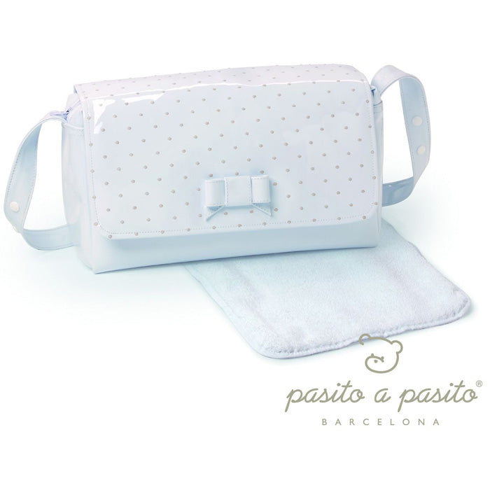 Borsa + Fasciatoio Pasito a Pasito Topito in ecopelle pois Beige La Borsa Fasciatoio è molto elegante e pratica per trasportare tutto il necessario per il vostro bambino. Dotata di diversi scomparti e la maniglia può essere regolata da appendere al manubrio del passeggino. Include il fasciatoio. Lavabile a mano o in lavatrice. I materiali utilizzati sono privi di coloranti azoici e sostanze nocive per la salute. Dimensioni Borsa + Fasciatoio Pasito a Pasito Topito in ecopelle pois Beige Dimensioni: 35 x 12 x 18 cm