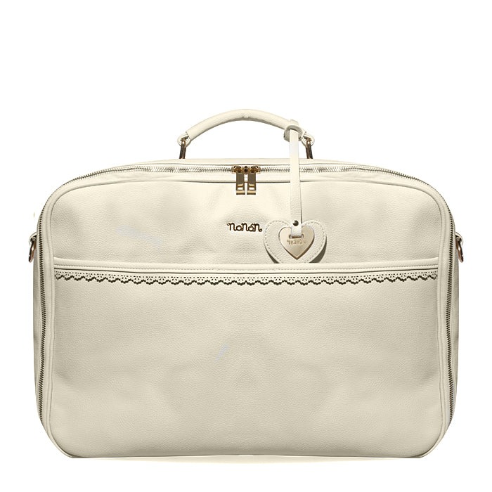 É impreziosita da manico e tracolla per una mamma alla moda che non rinuncia alla comodità e dotata di pratica cerniera che permette il facile inserimento degli oggetti necessari al tuo bebè.
