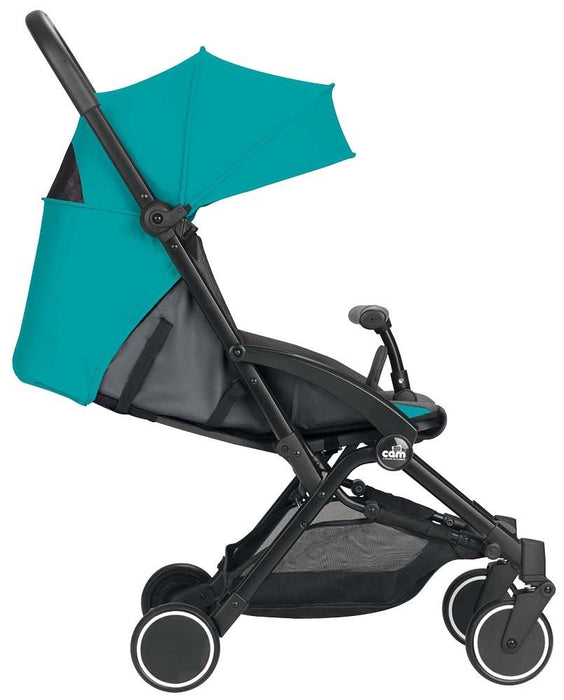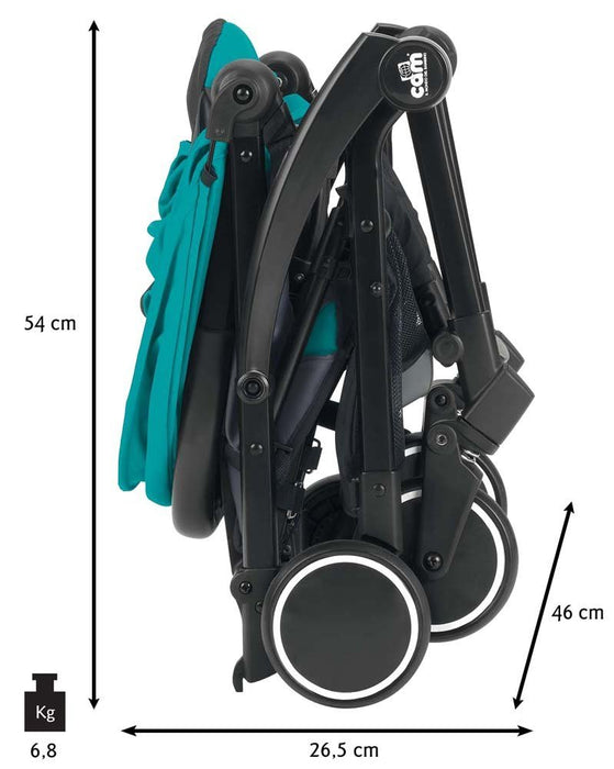 Leggero ( solo 6,8 kg) e compatto (54 cm in altezza) Cubo è il nuovo passeggino della Cam per i genitori che amano viaggiare con il proprio figlio, infatti grazie alla tracolla inclusa nel prodotto e al suo peso portarselo con se durante le gite fuori casa è una passeggiata! Dotato di telaio in alluminio, schienale multiposizione utilizzabile dalla nascita, ampia e profonda seduta, maniglione unito con sistema di chiusura ad una sola mano, davantino removibile, ruote anteriori piroettanti, freno centralizzato a pedale, morbide sospensioni anteriori e posteriori, cinture a 5 punti, spallacci e spartigambe imbottiti e cestino portaoggetti. Chiusura ultracompatta, da chiuso sta in piedi da solo.