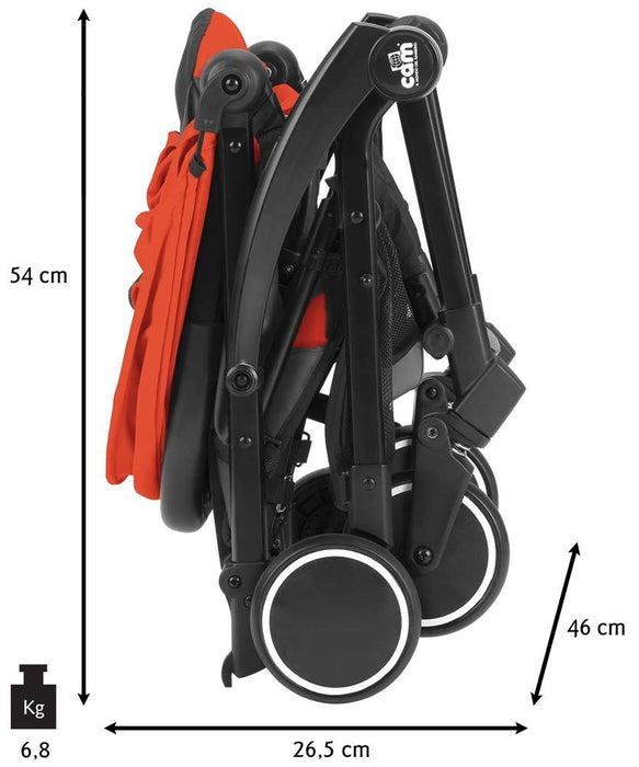 Leggero ( solo 6,8 kg) e compatto (54 cm in altezza) Cubo è il nuovo passeggino della Cam per i genitori che amano viaggiare con il proprio figlio, infatti grazie alla tracolla inclusa nel prodotto e al suo peso portarselo con se durante le gite fuori casa è una passeggiata! Dotato di telaio in alluminio, schienale multiposizione utilizzabile dalla nascita, ampia e profonda seduta, maniglione unito con sistema di chiusura ad una sola mano, davantino removibile, ruote anteriori piroettanti, freno centralizzato a pedale, morbide sospensioni anteriori e posteriori, cinture a 5 punti, spallacci e spartigambe imbottiti e cestino portaoggetti. Chiusura ultracompatta, da chiuso sta in piedi da solo.