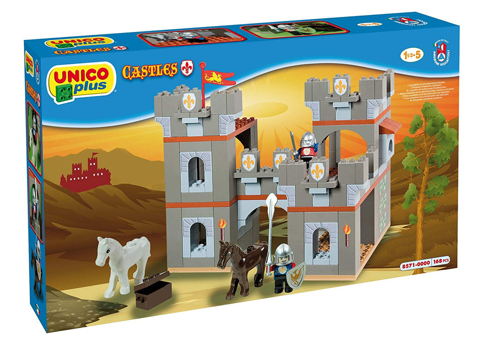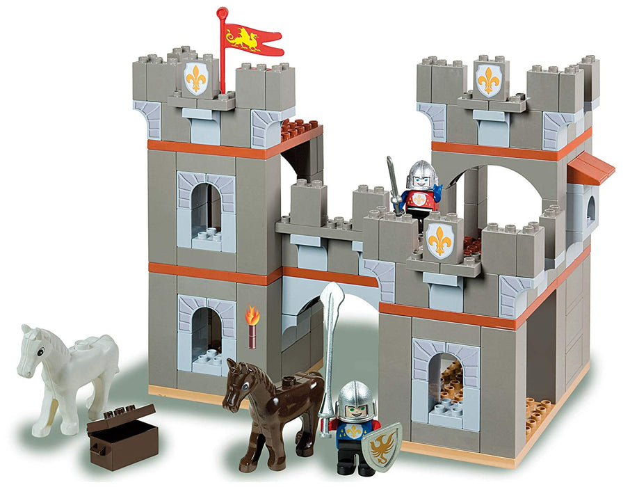 Contiene: 2 personaggi di cavalieri, 2 cavalli, mattoncini da decorare e accessori
