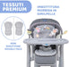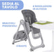PRATICO E REGOLABILE: 8 livelli di regolazione in altezza e seduta morbida in similpelle, facile da pulire con una spugnetta; una volta chiuso il seggiolone è compatto e può essere riposto facilmente