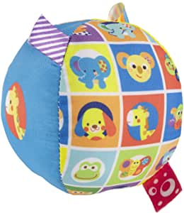 Morbida palla musicale realizzata con diversi tessuti, disegni divertenti e supercolorati.