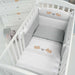 Completo piumone composto da: paracolpi, sacco sfoderabile, imbottitura e federa per cuscino.