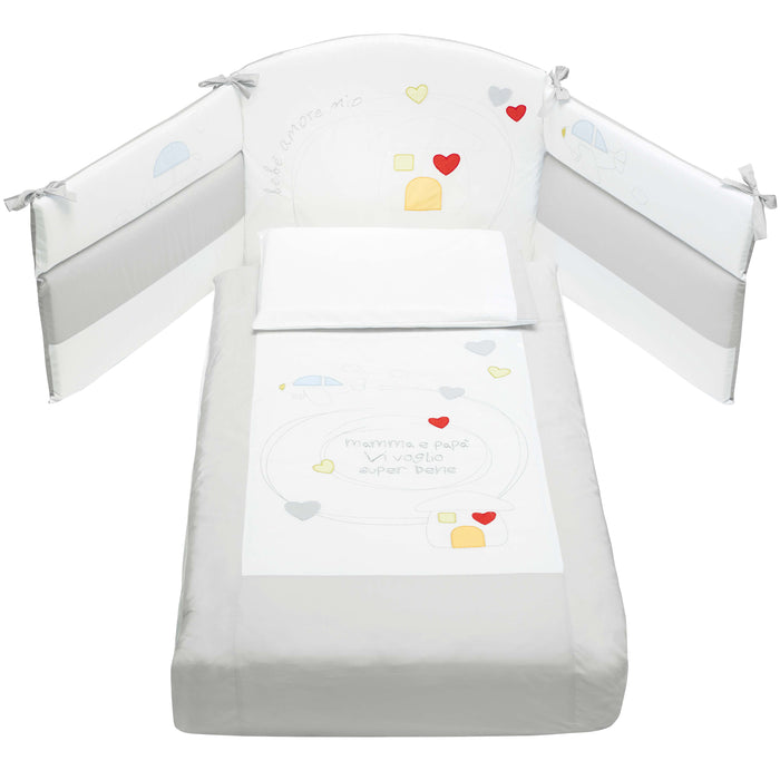 Set piumone ricercato e moderno, composto da 3 pezzi: sacco, paracolpi e federa.