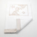 Coperta per lettino, realizzata in morbido tessuto pile e rifinita da un bordo di puro cotone, con ampi decori ricamati in applicazione.