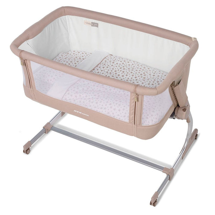 La culla Babyside di Jané é il modo piú comodo e semplice di condividere il letto con il tuo bambino. I suoi piedi telescopici e le 6 posizioni di altezza fanno sì che si possa adattare a qualunque letto. Babyside si puó utilizzare anche come culla indipendente alzando uno dei suoi laterali. Grazie alle sue 4 ruote indipendenti con freno, risulta facile muoverla e si può piegare per portarla in viaggio. Il materasso della culla é reclinabile, adattandosi alla posizione più comoda per il neonato. Accessori inclusi in 100% cotone: piumone, fodera del piumone, coprimaterasso, cuscino e federa. Misure Babyside 92 x 67 x 68/79 cm Materasso 49,5 x 82,5 cm Peso Babyside: 10Kg Età: 0 - 6 mesi (o fino a 9 kg)