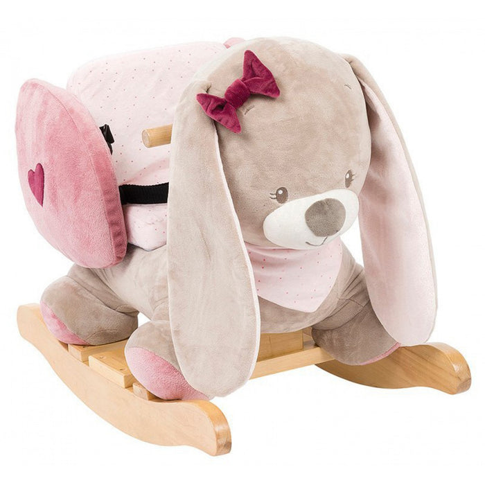 - Dondolo con solida base in legno, seduta imbottita e cinturino di sicurezza