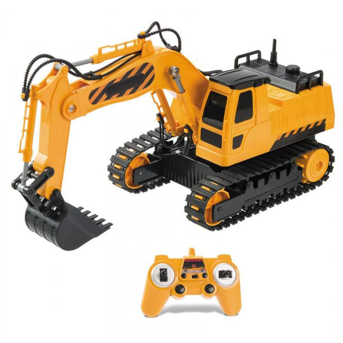 Escavatore radiocomandato di Mondo, con telecomando per poterlo guidare in tutte le direzioni. Frequenza: 2,4andnbsp;GHz. Carrozzeria Hard Body per resistere agli urti. In scala 1:66. L'escavatore andegrave; dotato di Battery Pack ricaricabile. Il telecomando necessita 2 batteria AA (NON incluso).