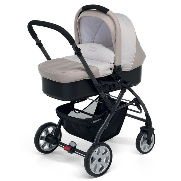 La navicella è adatta ai primi mesi del bambino, si fissa facilmente al telaio con sistema di aggancio/sgangio, dotato di fondo traspirante e schienale regolabile, copertina e cappottina removibile, fornito di copertina per navicella utilizzabile anche come coprigambe
