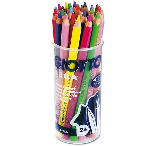 Questo è il bellissimo barattolo da 24 pezzi marca giotto, pastelli colorati e di ottima qualità.