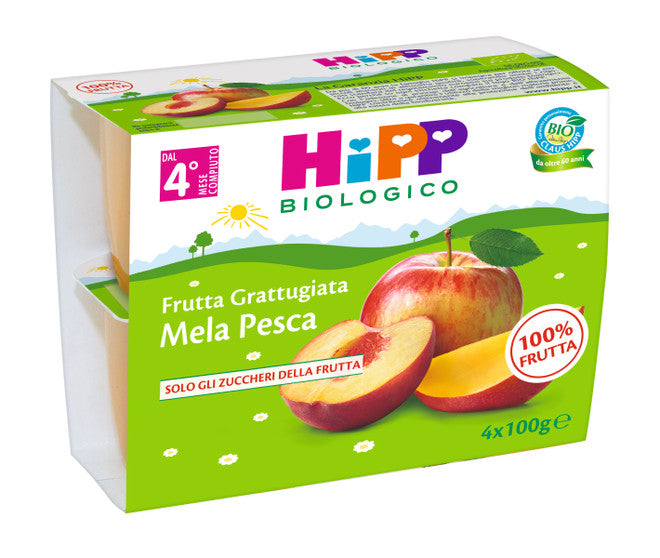 - La merenda di frutta grattugiata 100% frutta mela e pesca viene prodotta solo con frutta 100% biologica; unisce al delicato gusto della mela il ricco sapore della pesca e una leggera nota di mango, non contiene coloranti né conservanti. Può essere consumata fresca o a temperatura ambiente, come fine pasto o in ogni momento della giornata.