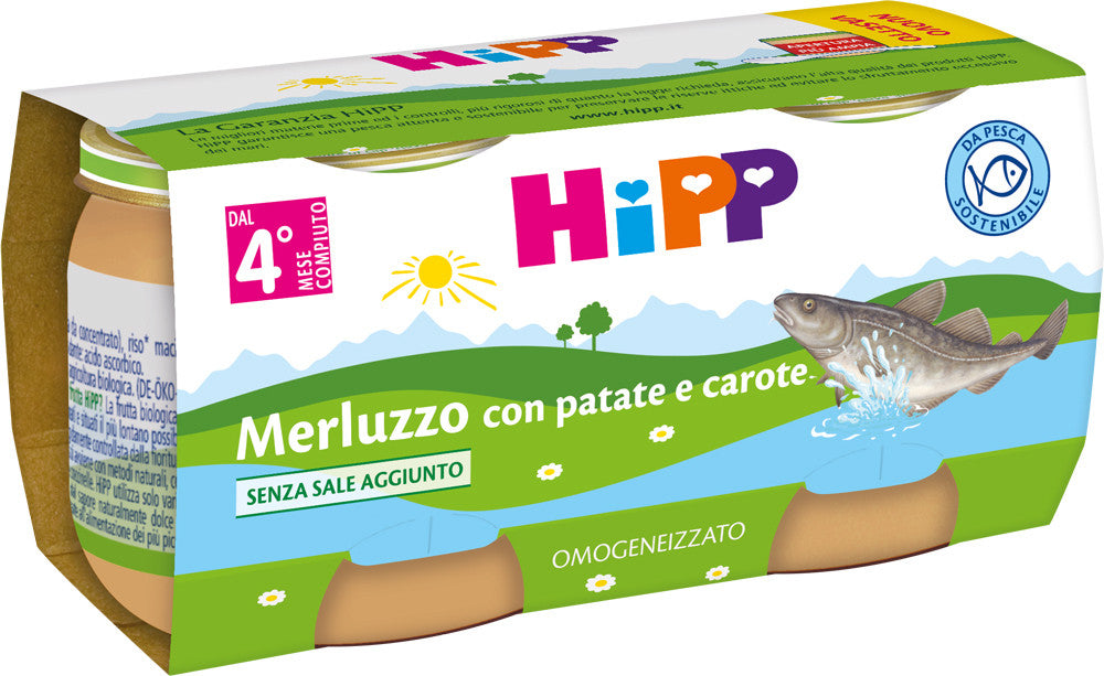 HiPP OMOGENEIZZATO DI MERLUZZO,PATATE E CAROTE