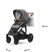 Passeggino con telaio: lunghezza 100 cm, altezza 106 cm, larghezza 59 cm, peso: 12 kg