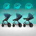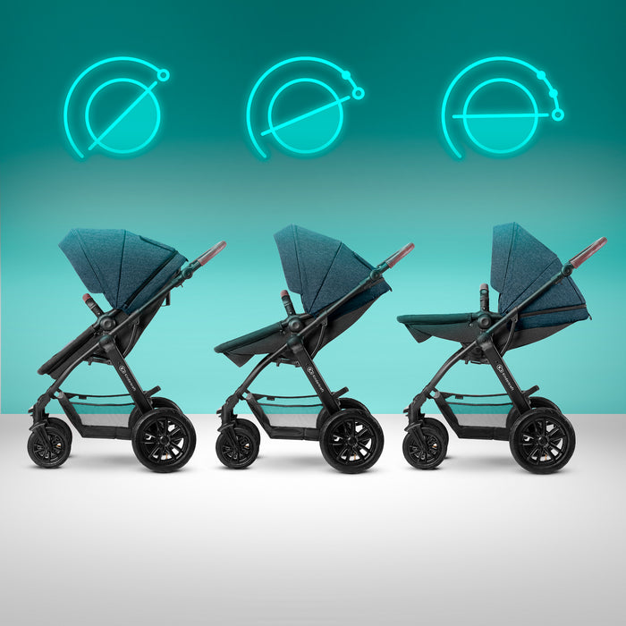 - Nella versione passeggino, sono disponibili tre posizioni della seduta: seduta, semisdraiata e sdraiata, e due direzioni di guida: in avanti e in senso contrario di marcia