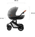 La struttura in alluminio, i tessuti resistenti all’usura e i dettagli in ecopelle, rendono Prime la scelta perfetta per i neo genitori.