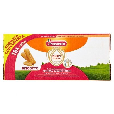 Alimento liquido per bambini a base di latte intero con biscotto Plasmon.