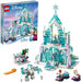 Salta sulla slitta di Anna e partite insieme per visitare il interessante castello di ghiaccio di Elsa. Aiuta Elsa ad usare i suoi poteri per aprire le porte e scoprire il ponte scorrevole, prima del grande ingresso a palazzo. Gustate il tè e la torta in cucina, poi prendete la scala magica fino al secondo piano per esplorare il balcone trasparente. Saltate sullo scivolo per andare a giocare nella fortezza di neve e nel parco giochi invernale. Tanto divertimento invernale ti attende con LEGO l Disney Frozen.