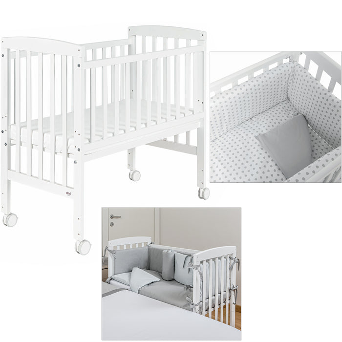 Lettino Culla Co-Sleeping Picci Lella + Materasso E Tessile Foglia Grigio
