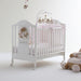 Dalle linee sinuose e romantiche il lettino ricorda quelli di una volta, impreziosito nella parte frontale da un nastro in cotone azzurro dalla forma perfetta.Uno stile senza tempo, luogo di sogni, divertimento, riposo e apprendimento. Un posto incantato e puro, come l'infanzia.