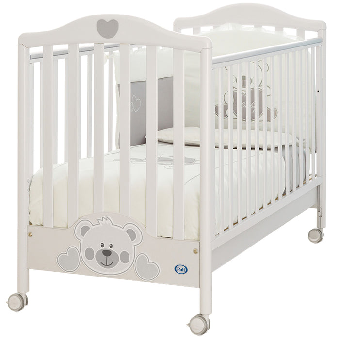 Le sponde laterali del lettino sono la difesa alla vivacità incontrollata dei piccoli, così è nata "Security" che fa scendere le spondine di soli 20/25 cm. in modo che il bambino non possa scavalcarle. E per le mamme è stato brevettato il sistema "Pratiko" che consente di regolare l'altezza delle spondine con una sola mano: basta una leggera pressione del ginocchio sulla parte inferiore e la spondina scende dolcemente nella posizione voluta, entro le corsie di scorrimento, oggi inserite nelle sponde laterali e fornite di ammortizzatori. E infine ogni lettino scivola dolcemente in qualunque punto della stanza o della casa per mezzo delle ruote piroettanti, dotate di freno di bloccaggio.