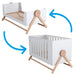 Con questa culla puoi dondolare il tuo bambino in un vero movimento Slow Swing. La culla di 140 x 70 cm incorpora un nuovo e sicuro dondolo, così puoi dondolare comodamente il tuo bambino e aiutarlo a dormire. Grazie alle sbarre removibili, può trasformarsi da culla in un comodo lettino. La collezione di mobili Swing è caratterizzata da un design raffinato in uno stile moderno e minimalista che combina il bianco con le lame in legno di faggio originali in colori scandinavi.