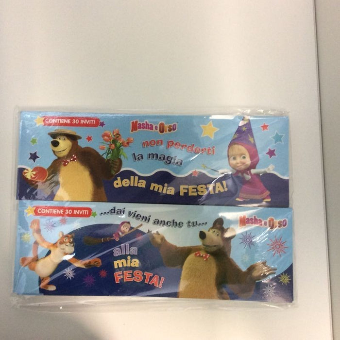 Il blocchetto contiene 30 inviti di Masha e l\'Orso, ed i loro cari amici, invita le tue amiche ed i tuoi amici al tuo compleanno per festeggiare alla grande il tuo giorno pi
