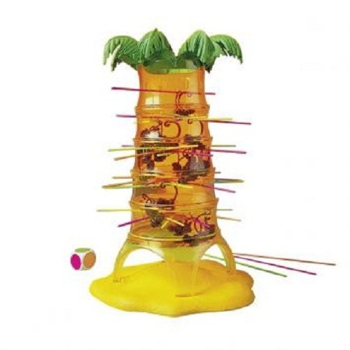 Salva le Scimmie, il gioco in scatola di grande successo che ti regala il divertimento senza fine. Una volta inseriti tutti i 30 bastoncini nella palma, i bambini dovranno rovesciare le 30 scimmie dalla parte superiore della palma; le scimmie grazie alla loro coda si attaccheranno ai bastoncini. Ora comincia ildivertimento! Lobiettivo del gioco è quello di levare i bastoncini a turno grazie al lancio del dado cercando di non far cadere le scimmie. Il giocatore che avrà fatto cadere meno scimmie vince il gioco.