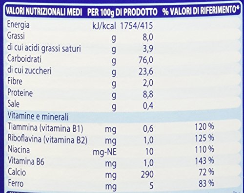 A base di farina di grano tenero Ricco di vitamine con calcio e ferro e senza uovo Contiene glutine, latte e soia