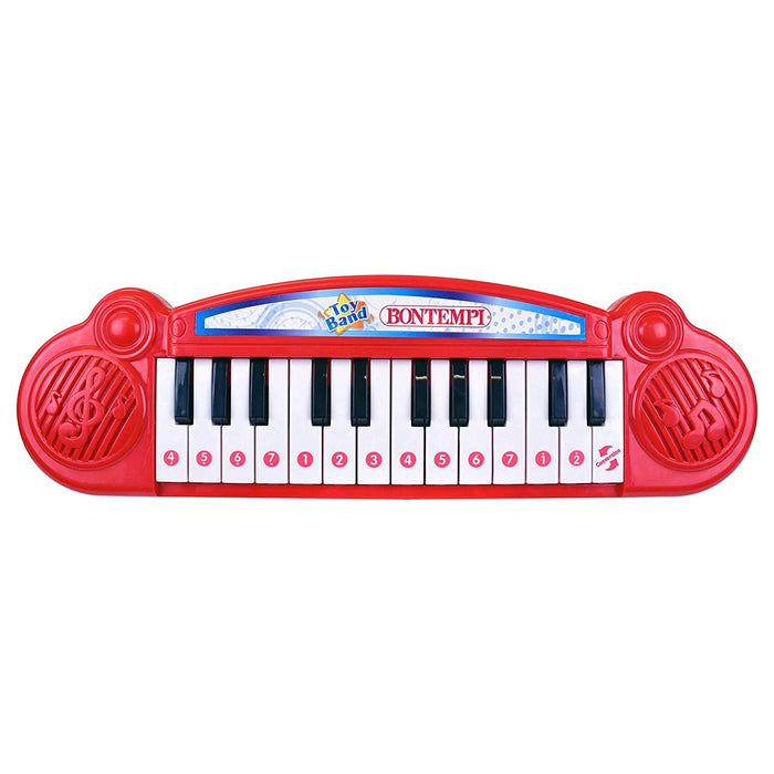 Mini tastiera elettronica di Bontempi a 24 tasti con 23 brani preregistrati andbull; Selettore note/demo andbull; Spegnimento automatico andbull; Alim.: 2 batterie da 1,5V R6/AA (non fornite).