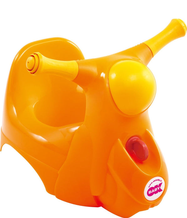 Il vasino Scooter di Ok Baby è dotato di un faro sonoro per l' intrattenimento del bambino, seduta ergonomica e confortevole e la parte frontale è removibile per una facile pulizia