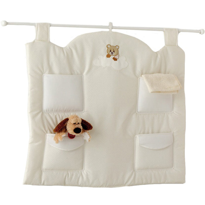 Il pratico Pannello Portaoggetti Baby Expert Abbracci by Trudi è coordinato alla cameretta: ha un'asta reggi pannello in legno per essere facilmente appeso e comodi scomparti per riporre in modo ordinato gli oggetti del bambino.