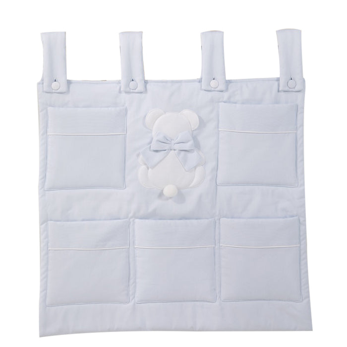 Utile per tenere sempre in ordine la cameretta, il pannello è facile da lavare. A seconda del gusto personale può essere appeso al muro, sorretto dall'apposita asta, oppure agganciato al lettino del bimbo, per avere sempre tutto a portata di mano. L'orsetto Fiocco è un tenero compagno del tuo bambino e lo segue in ogni momento della sua giornata!