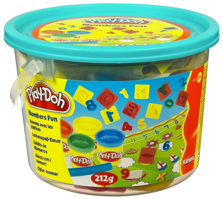 Secchielli mini Playdoh con i vasetti playdoh e i stampi con i numeri