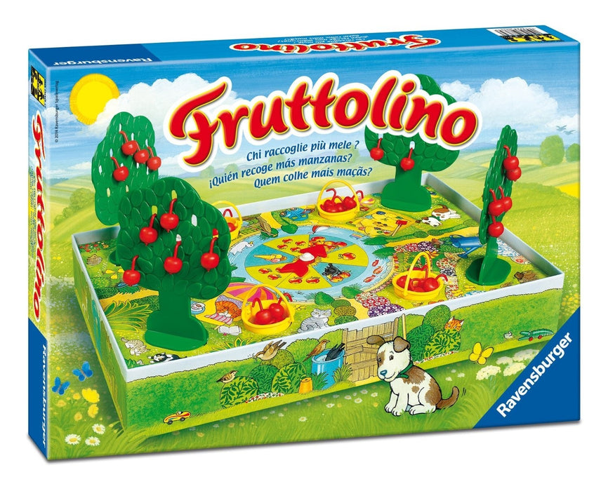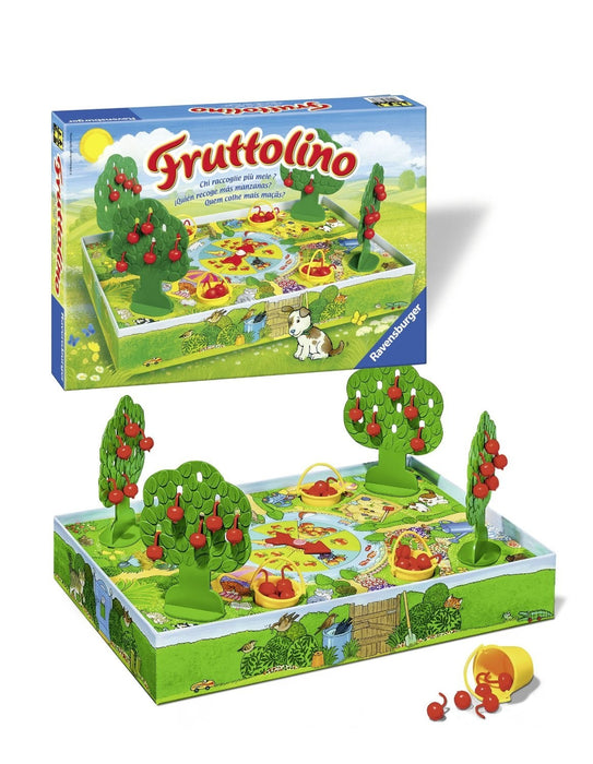 Ogni bambino ha il suo giardino con il proprio melo, dal quale raccoglie i deliziosi frutti per vincere la sfida, ma attenzione a non farvi distrarre dal corvo dispettoso. Vince chi riempie per primo il proprio secchiello. Uno splendido gioco tridimensionale realizzato da ravensburger per i bambini che non sanno ancora leggere o contare.