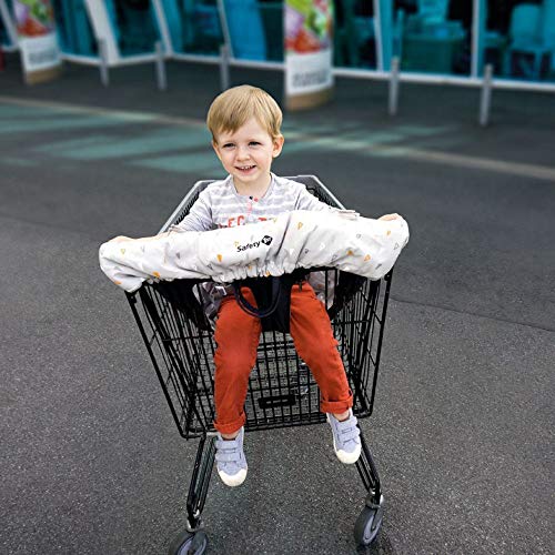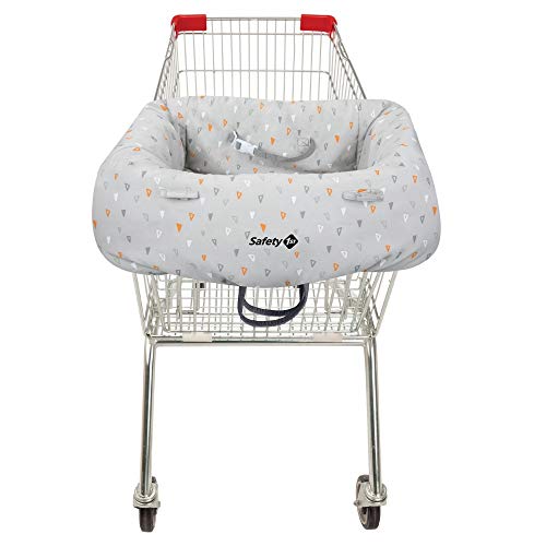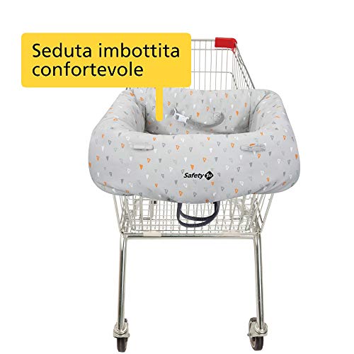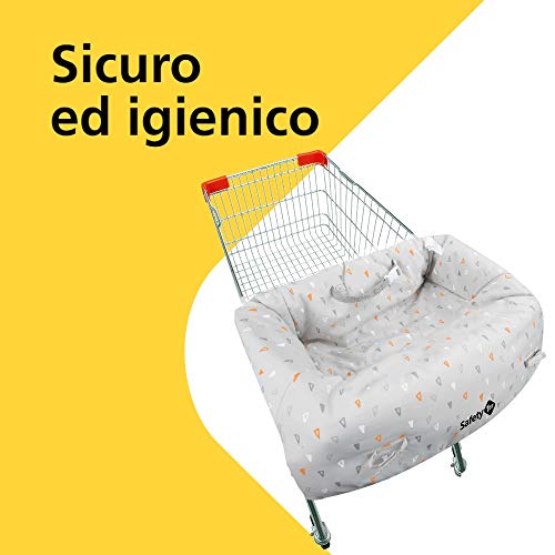 Copri carrello della spesa sicuro e igienico dotato di passanti per agganciare giochini e succhietto Seduta imbottita con cintura di sicurezza integrata Lavabile in lavatrice a 30 gradi Copricarrello universale si fissa su tutti i carrelli della spesa Si piega e si ripone facilmente in borsa