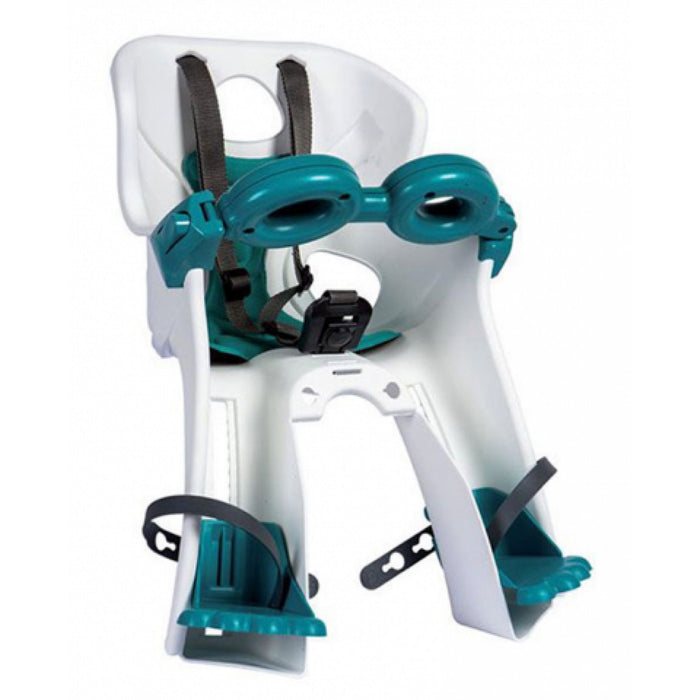 Front baby seat Freccia Sportfix white - lightweight and solid structure, washable non-toxic plastic - soft washable cushion - ventilation holes on shoulders and back - extremely comfortable safety strap, it engages and disengages with one hand - stepless adjustment of the legs - seat belts with adjustable length - high side rails for improved child restraint - practical handle that further protects your child and makes the journey more fun - wide and comfortable seat - extensive protections to prevent the foot from touching the spokes - tested and approved according to the new European standard EN 14344 - max load 15 Kg