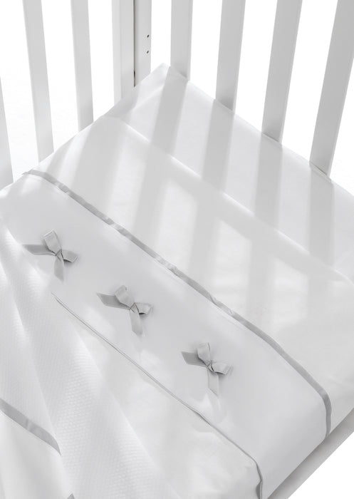 Set Lenzuola Lettino Erbesi Bubu Bianco Grigio Il Set Lenzuolino Erbesi Bubu 3pz per Lettino e' un graziosissimo e morbidissimo set tessile composto da federina, lenzuolino sotto e lenzuolino sopra. Tessuto: 100% cotone.