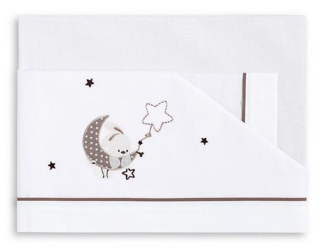 pirulos-juego lenzuola di cotone bambino Collezione Luna- il completo lenzuola in cotone includono: sopra, sotto e regolabile FDA di cuscino. Nella misura da 40 x 80 la CENEFA non è dritta, è circolare tutte le abbinati sono di colore bianco composizione del tessuto: 100% cotone. Disponibile in 3 colori Misure: - minicuna 50 x 80 - Lettino 60 x 120 - Maxicuna 80 x 140