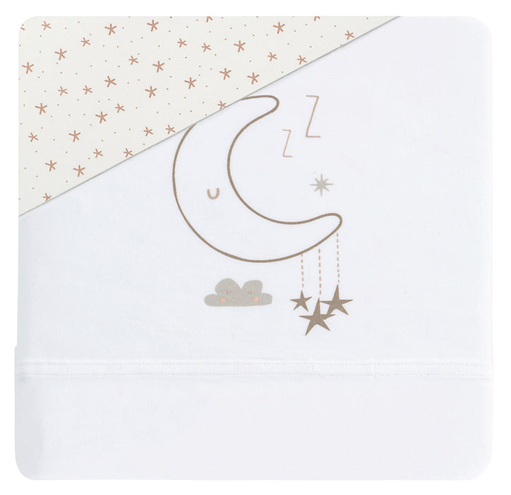 Set Lenzuolino Culla Pirulos composto da: lenzuolino sopra ricamato, lenzuolino sotto con angoli, federa per cuscino. Il tutto in cotone 100%.