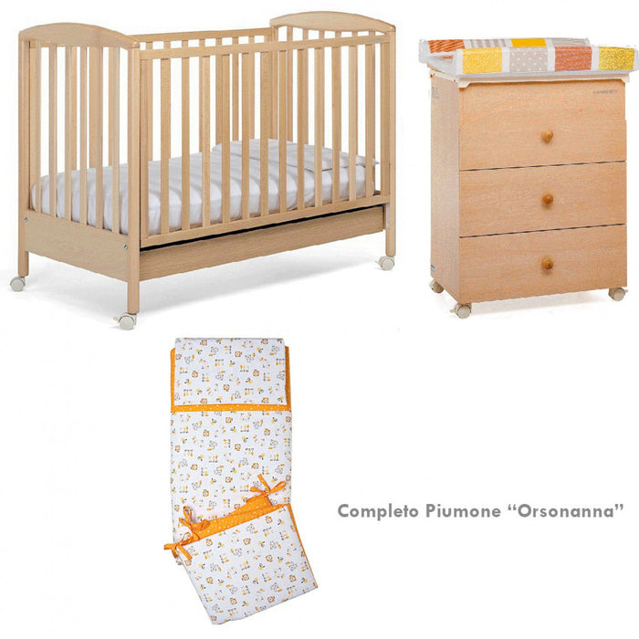 Il Set Foppapedretti andegrave; composto da: Lettino, Bagnetto Fasciatoio , Completo Piumone con paracolpi.