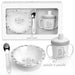Il set andegrave; composto da un piatto fondo con ventosa, un cucchiaio e una tazza. Raccomandato dai 5-6 mesi. Lavabile in lavastoviglie. Il set andegrave; conforme alle vigenti normative europee.