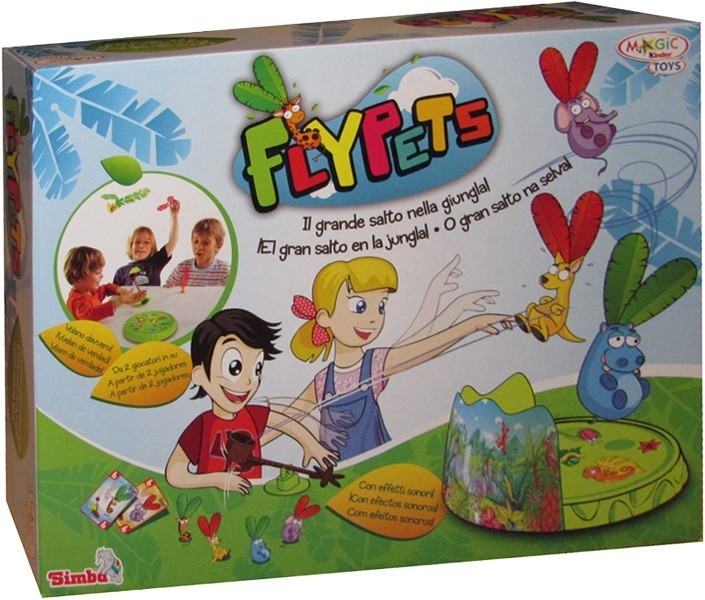 Questo divertentissimo gioco, si chiama Il grande salto nell giungla, consiste nel pescare una carta e lanciare il flypets, la base dove poggia il flypets è elettronica ed emette suoni, vince chi ottiene più punti. Segui tutte le istruzioni!